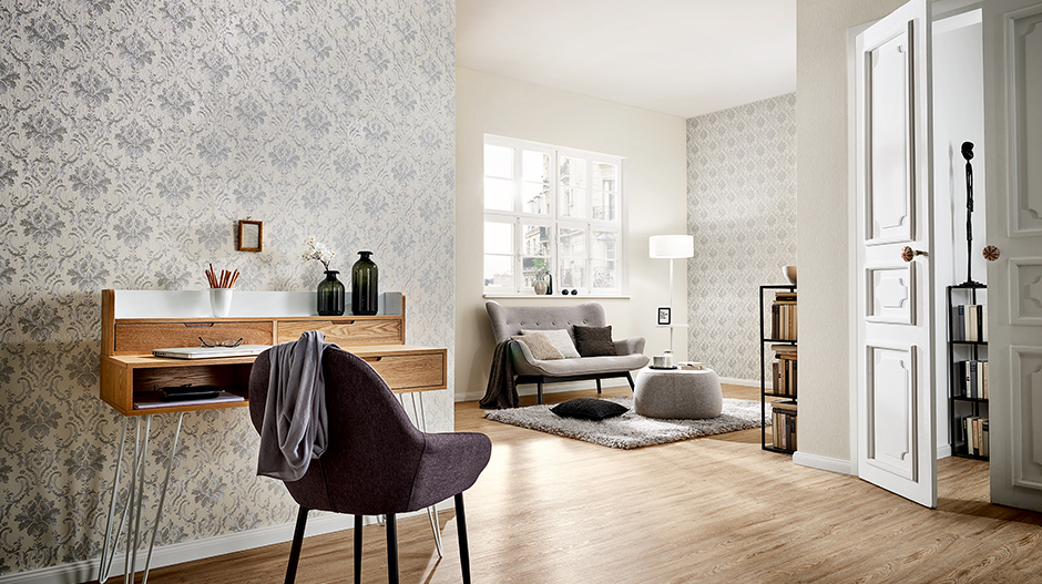 Обои Home Classic преимущественно выполнены в пастельных тонах бежевого, кремового, серого и воздушных оттенках голубого. Здесь вы не встретите ярких, броских, дерзких рисунков. Здесь – только элегантность и чопорность. Принты коллекции – это классические вензеля, нежные цветы, приглушенные полосы и аристократичные дамаски.