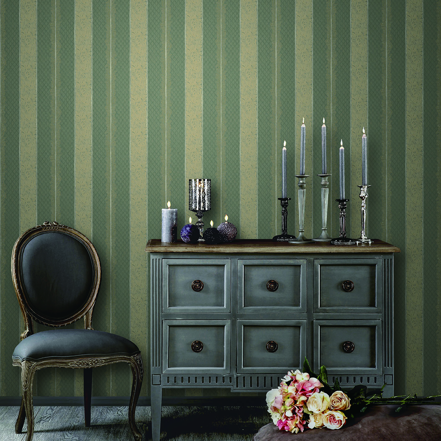 В коллекции можно встретить вензеля в разных проявлениях, спокойные штрихи и мазки, невероятно красивые рисунки мрамора и классические полосы. Полотна преимущественно выполнены в сдержанных тонах серого и бежевого, что достаточно свойственно для обоев Кварта Парэти.
